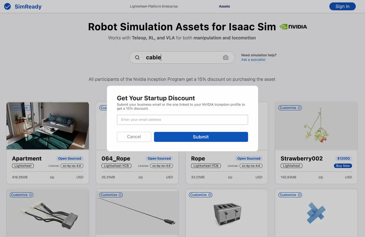This 15% discount for NVIDIA Inception members isn't just a promotional offer—it's a strategic collaboration. We believe that high-quality simulation assets should accelerate innovation, not create bottlenecks. By supporting the same mission NVIDIA champions, we’re nurturing the startups that will define the future of AI and robotics.